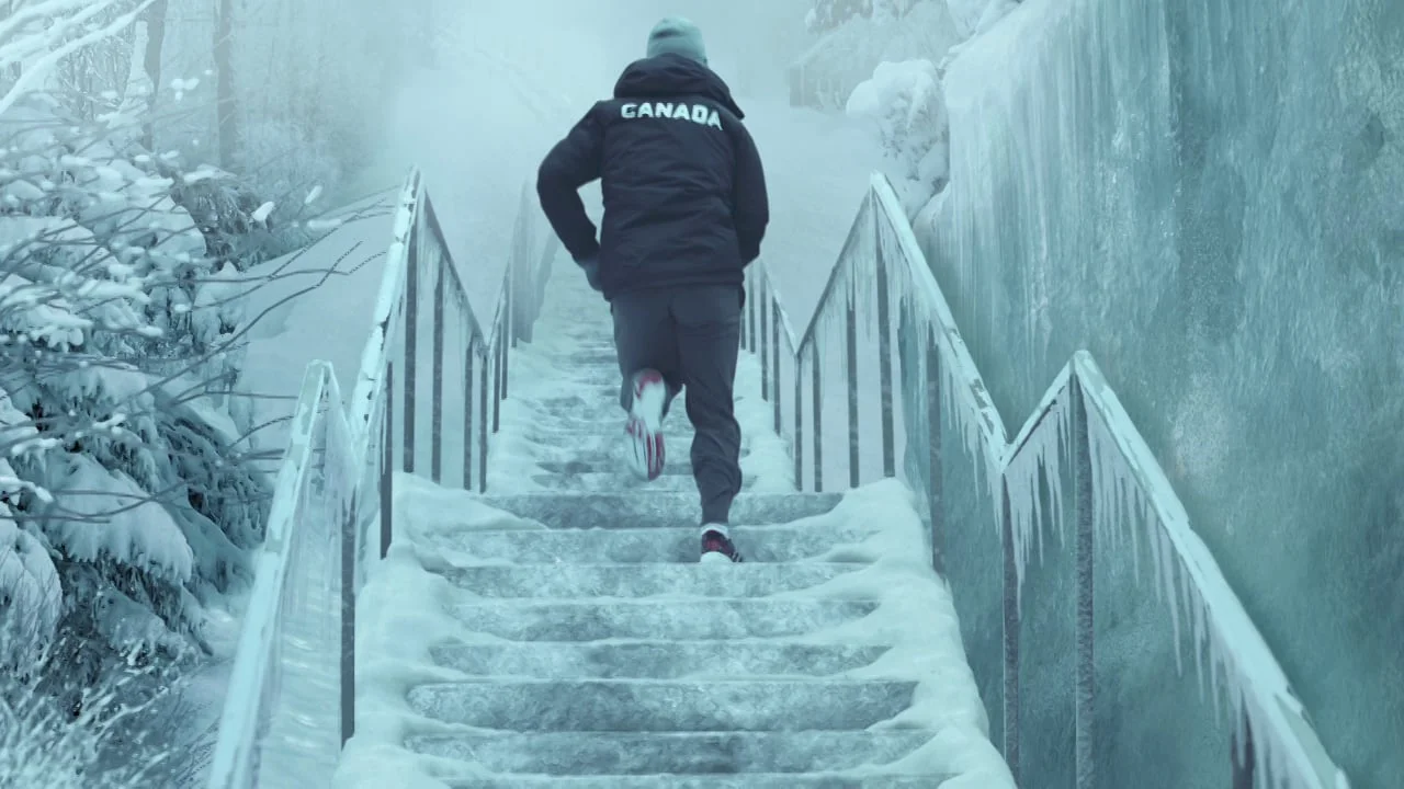 The concept for these films was to create a surreal ice world setting for the Olympic athletes to train in. Metaphorical of their hard - and often solitary - training routines, the environments had to look hostile and imposing.